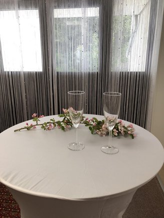 Vor allem im Sommer zum Sektempfang ist die Außenterrasse ein beliebter Treffpunkt, der zum Klönen und Anstoßen einlädt.